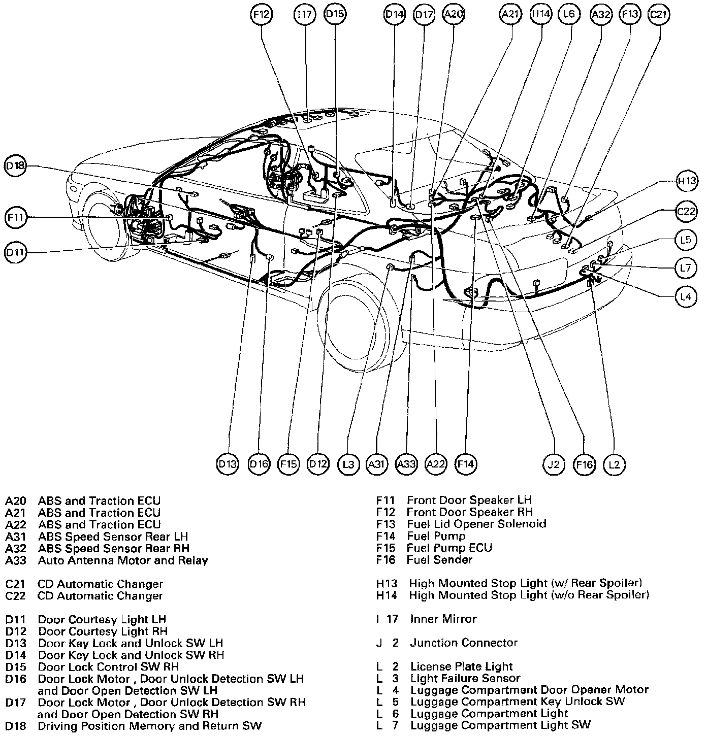 D17 Door Lock Motor, Door Unlock Detection SW RH and Door Open Detection SW RH