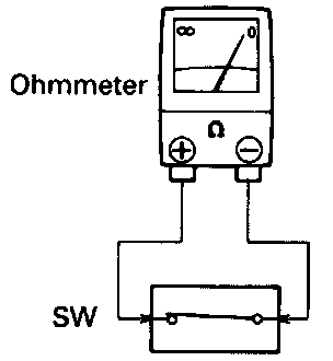 (b) Contact the two leads of an ohmmeter to each of the check points.