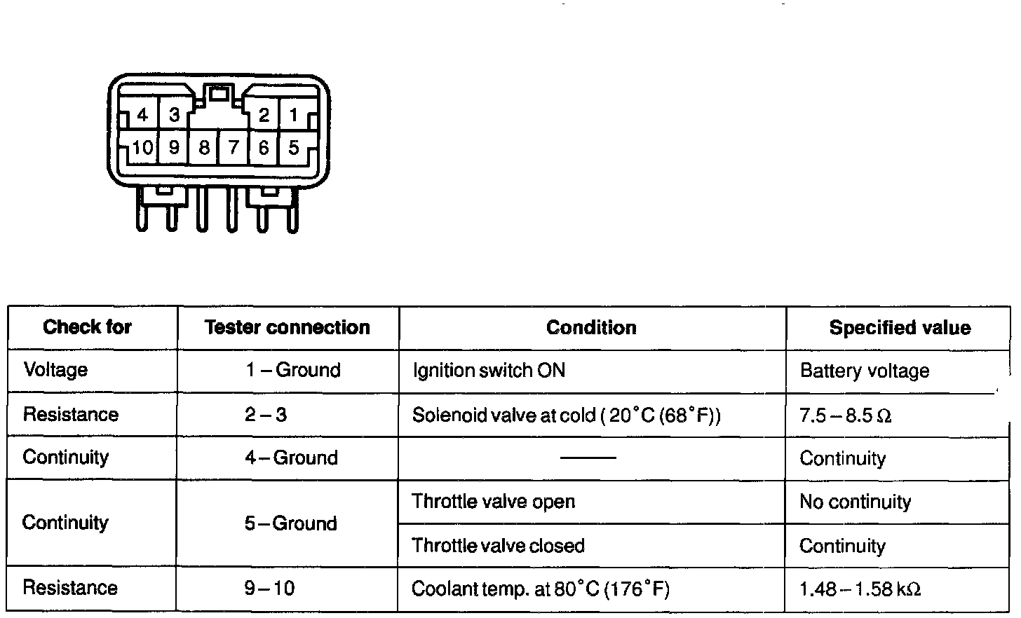 b. Check the connector on the wiring harness side as shown in the chart.