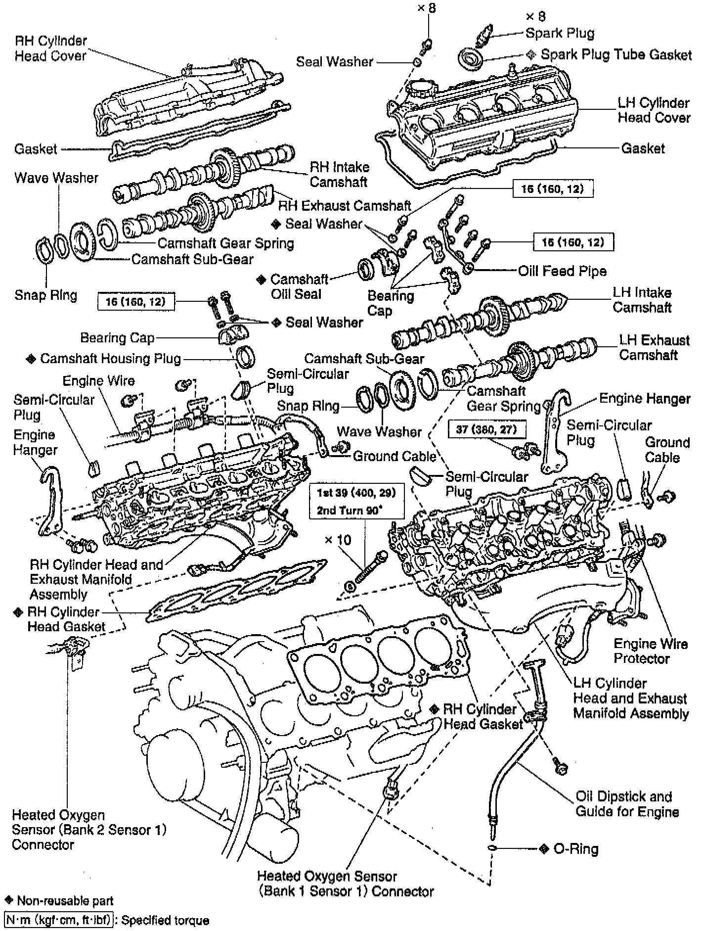 Home >> Lexus >> 1998 >> SC 400 V8-4.0L (1UZ-FE) >> Repair and Diagnosis >> Specifications >> Mechanical Specifications >> Engine >> Cylinder Head Assembly >> System Specifications >> Torque Specification