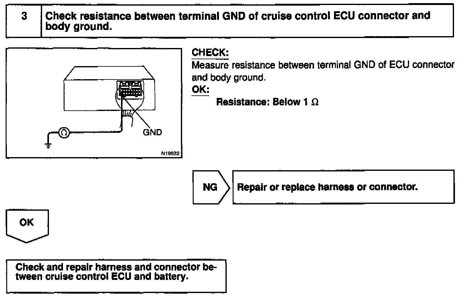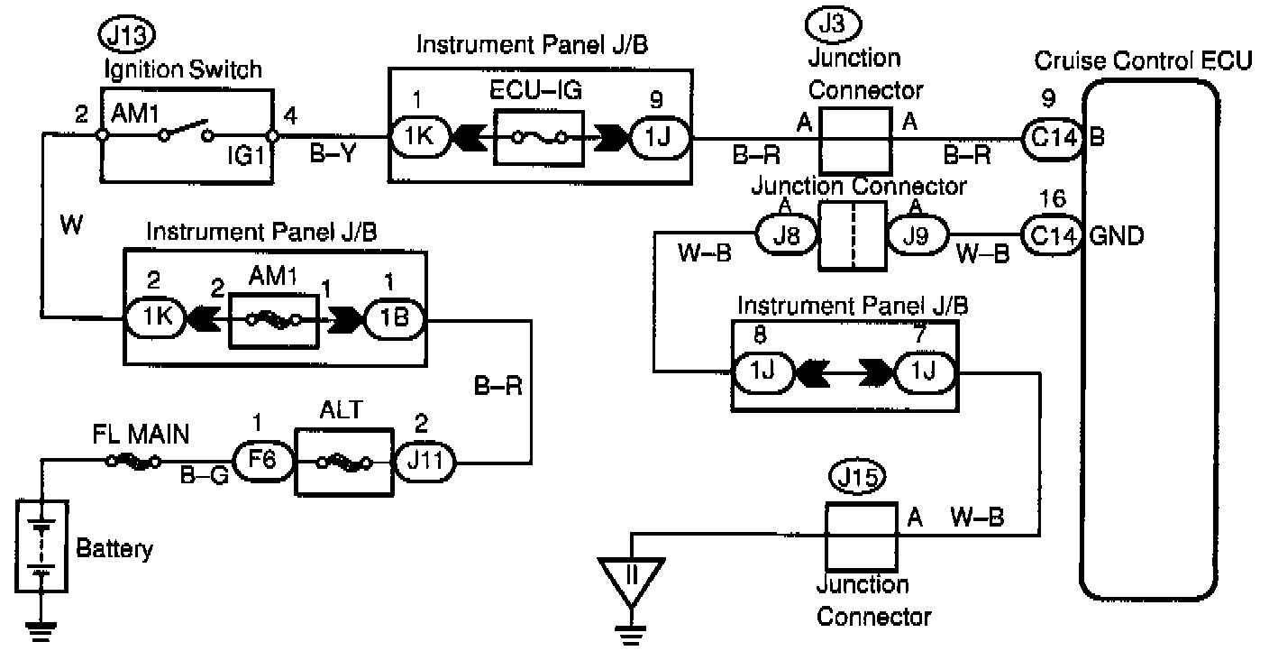 CIRCUIT DESCRIPTIONThe ECU power source supplies power to the actuator and sensors, etc. When terminal GND and the case of the cruise control ECU are grounded.