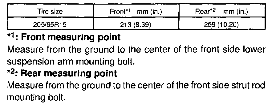 NOTICE: Before inspecting the wheel alignment, adjust the vehicle height to the specification. If the vehicle height is not to the specification, try to adjust it by pushing down on or lifting the body.