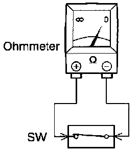 (b) Contact the two leads of an ohmmeter to each of the check points.