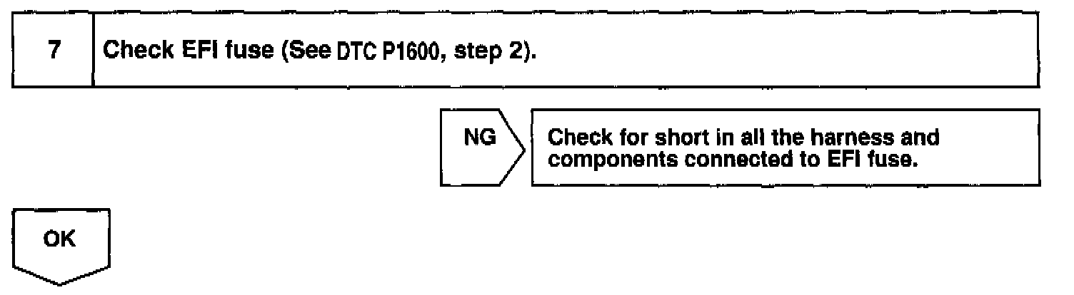 This signal causes current to flow to the coil, closing the contacts of the EFI main relay and supplying power to terminal +B of the ECM.