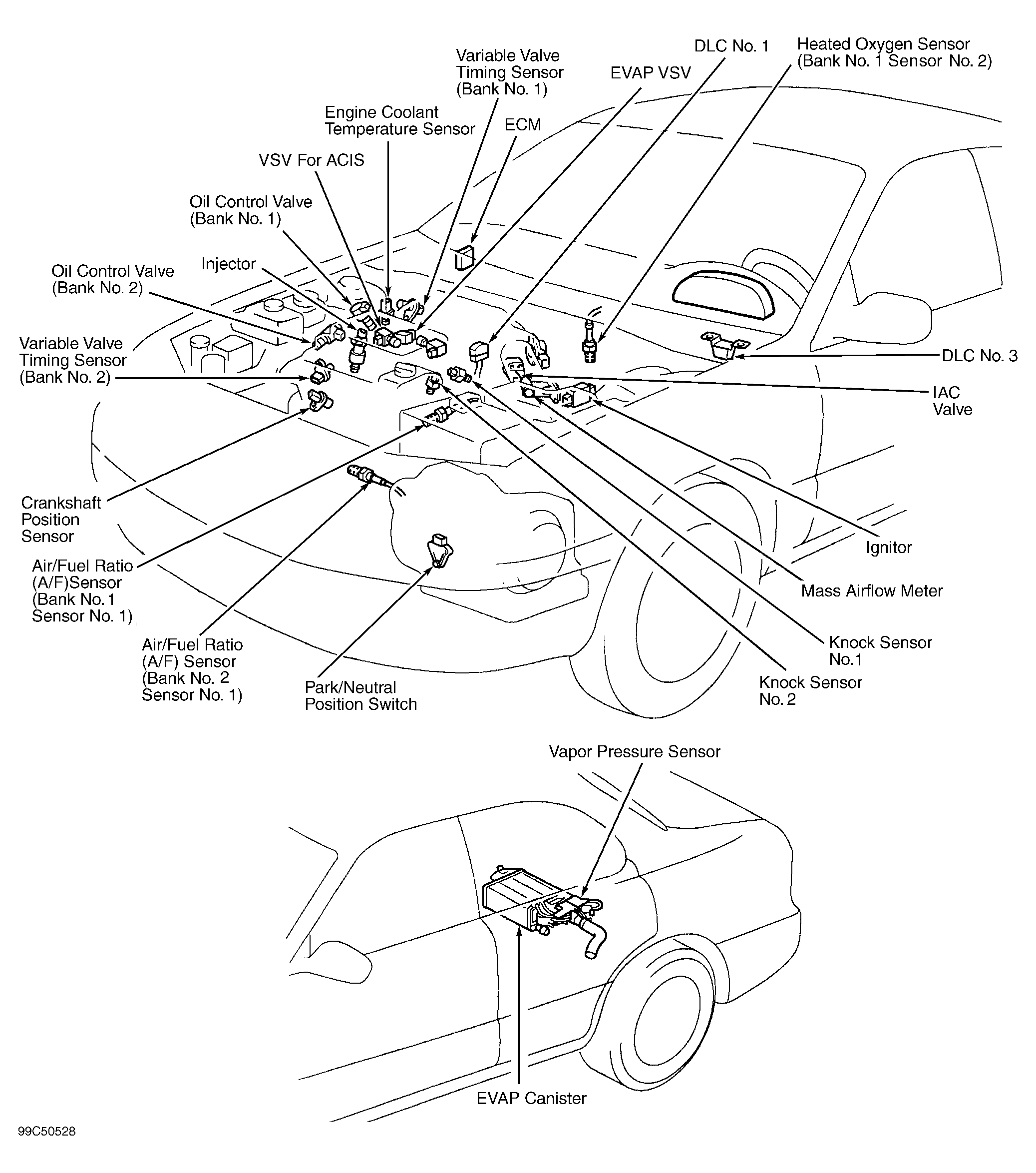 Fig 2: Locating Computerized Engine Control Components (GS300)