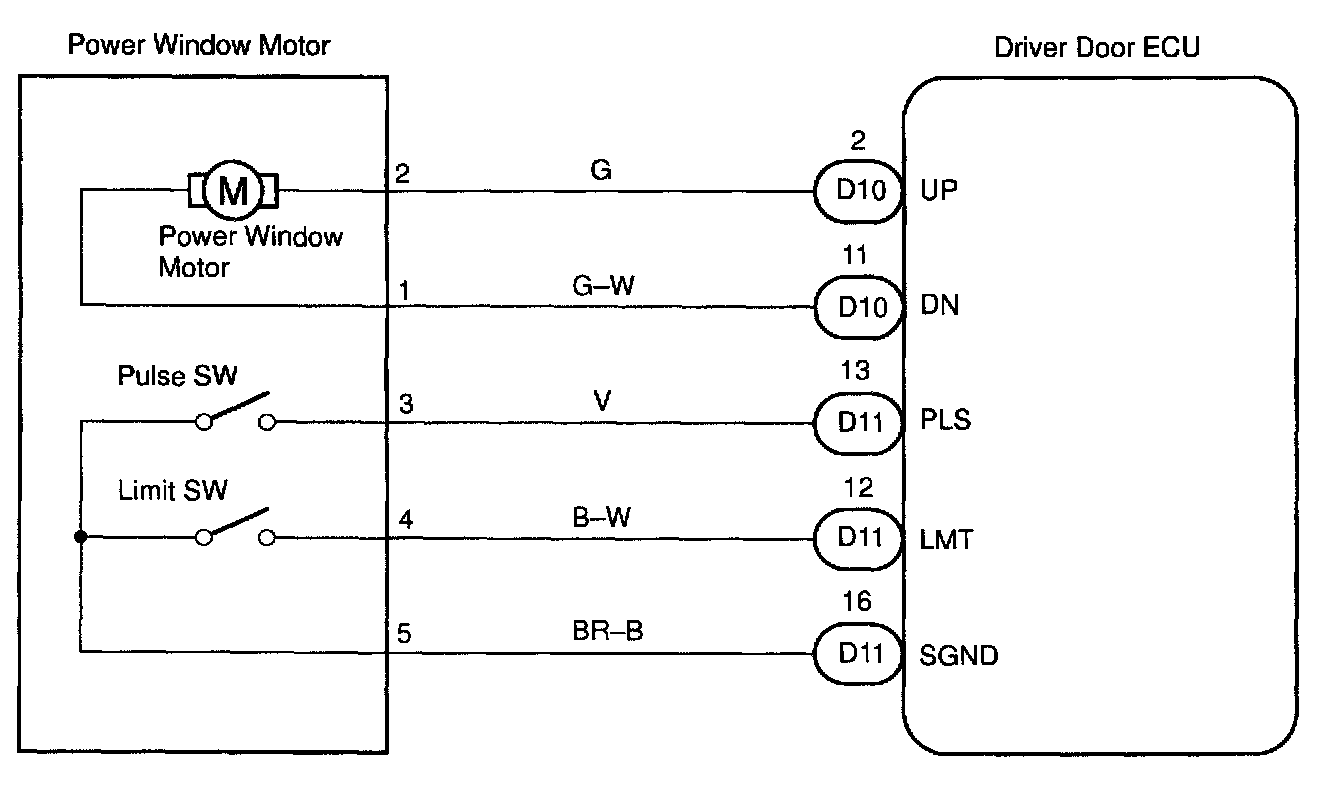 Jam protection pulse switch is built-in the power window motor. Pulse switch outputs