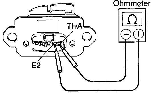 Using an ohmmeter, measure the resistance between terminals THA and E2