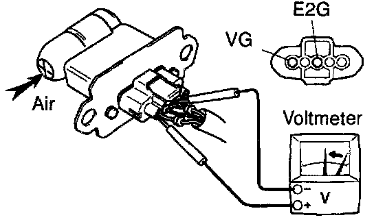 c. Using a voltmeter, connect the positive (+) tester probe to terminal VG, and negative (-) tester probe to terminal E2G.