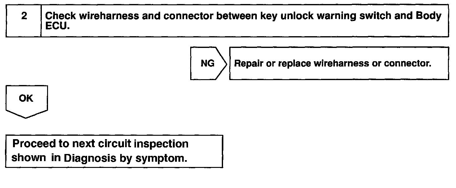 Home >> Lexus >> 1999 >> LS 400 V8-4.0L (1UZ-FE) >> Repair and Diagnosis >> Powertrain Management >> Computers and Control Systems >> Body Control Module >> Testing and Inspection >> Component Tests and General Diagnostics >> Key Unlock Warning Switch