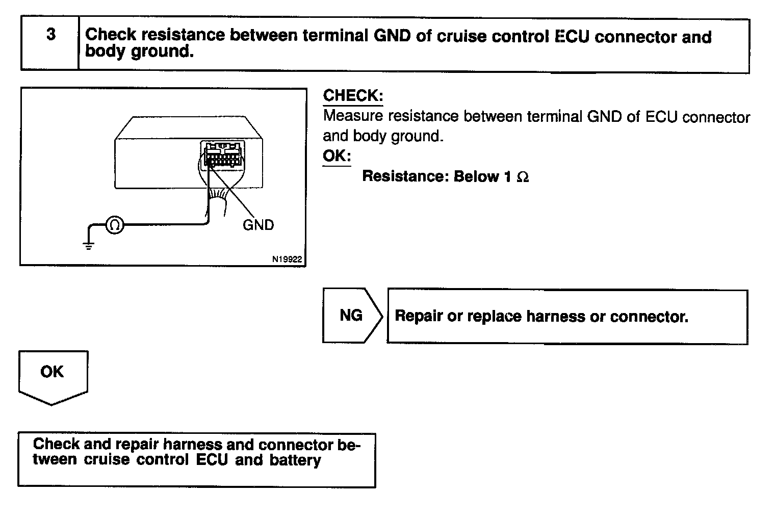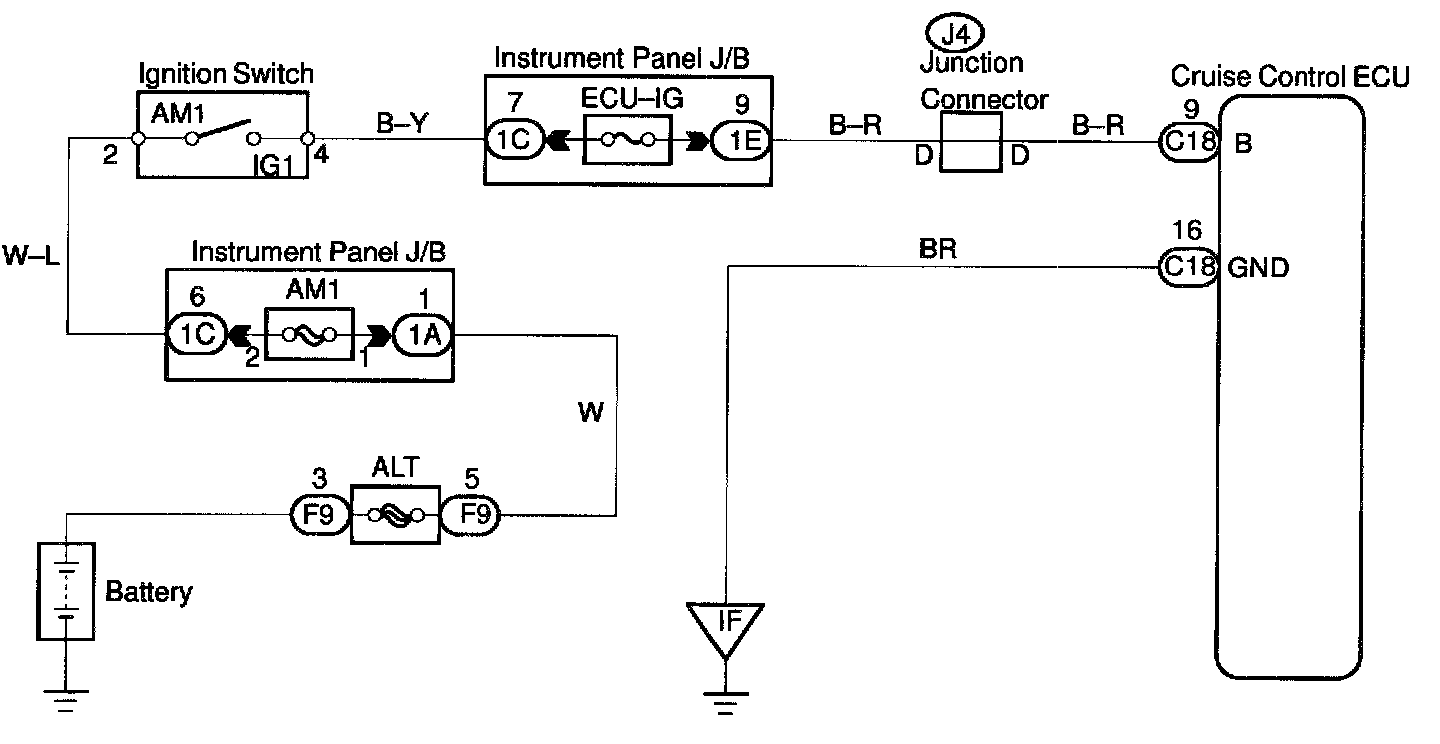 CIRCUIT DESCRIPTIONThe ECU power source supplies power to the actuator and sensors, etc. When terminal GND and the case of the cruise control ECU are grounded.