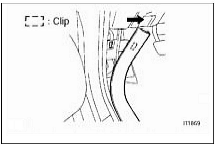 ^ Clock and audio station presets settings will be lost when the battery is disconnected. Be sure to record the customer's settings prior to disconnection. Reset the clock and audio station presets when repair is complete.