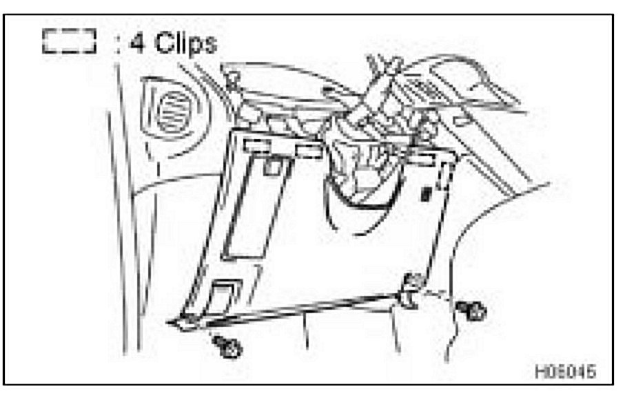 (g) Using a screwdriver, disengage the 4 clips and remove the lower finish panel.