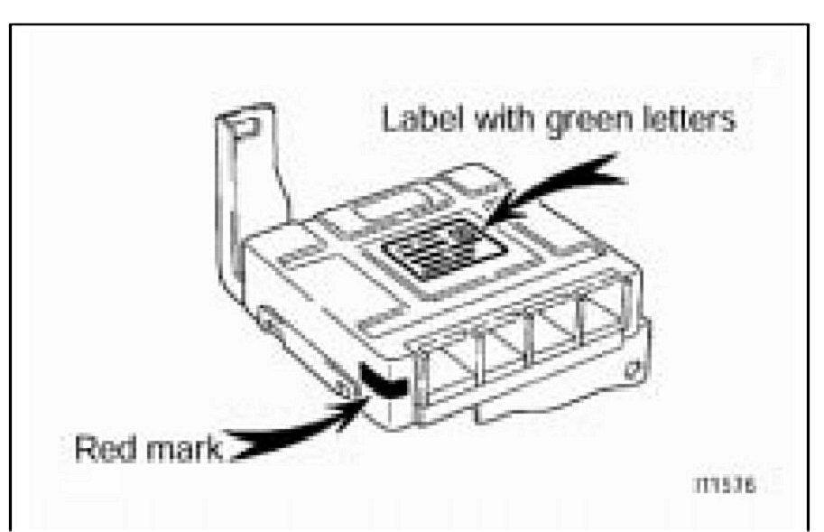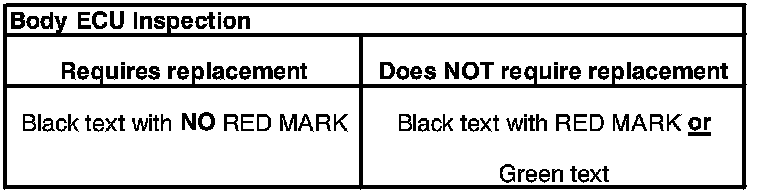 ^ Inspect the Body ECU label and/or corner of ECU to determine if it requires replacement as shown.