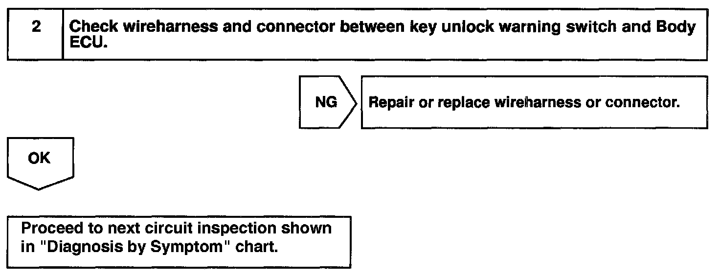 CIRCUIT DESCRIPTIONThe key unlock warning switch goes on when the ignition key is inserted in the key cylinder and goes off when the ignition key is removed.