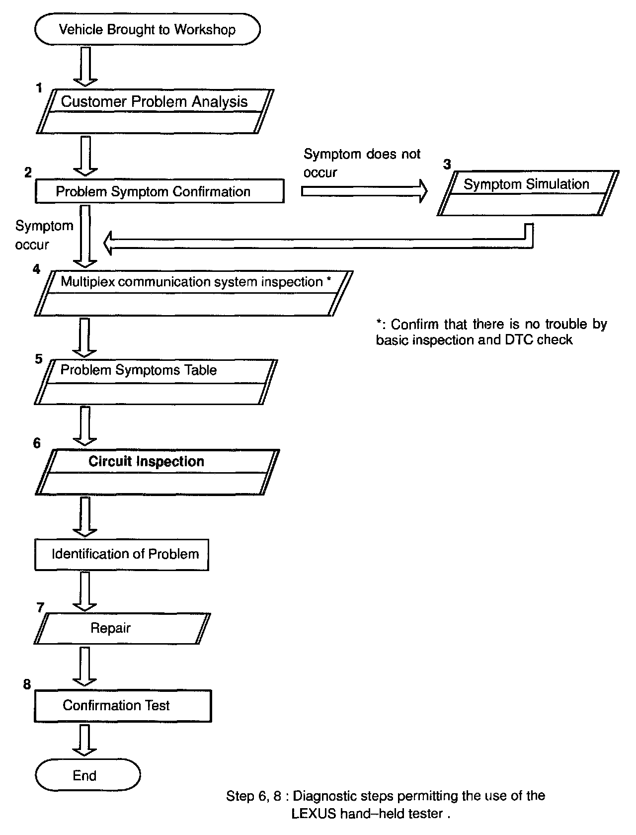 Home >> Lexus >> 1999 >> RX 300 FWD V6-3.0L (1MZ-FE) >> Repair and Diagnosis >> Powertrain Management >> Computers and Control Systems >> Relays and Modules - Computers and Control Systems >> Body Control Module >> Testing and Inspection >> Initial Inspection and Diagnostic Overview >> How To Proceed With Troubleshooting