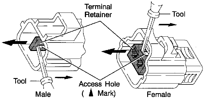 Type which cannot be pulled as far as Power Lock insert the tool straight into the access hole of terminal retainer as shown.