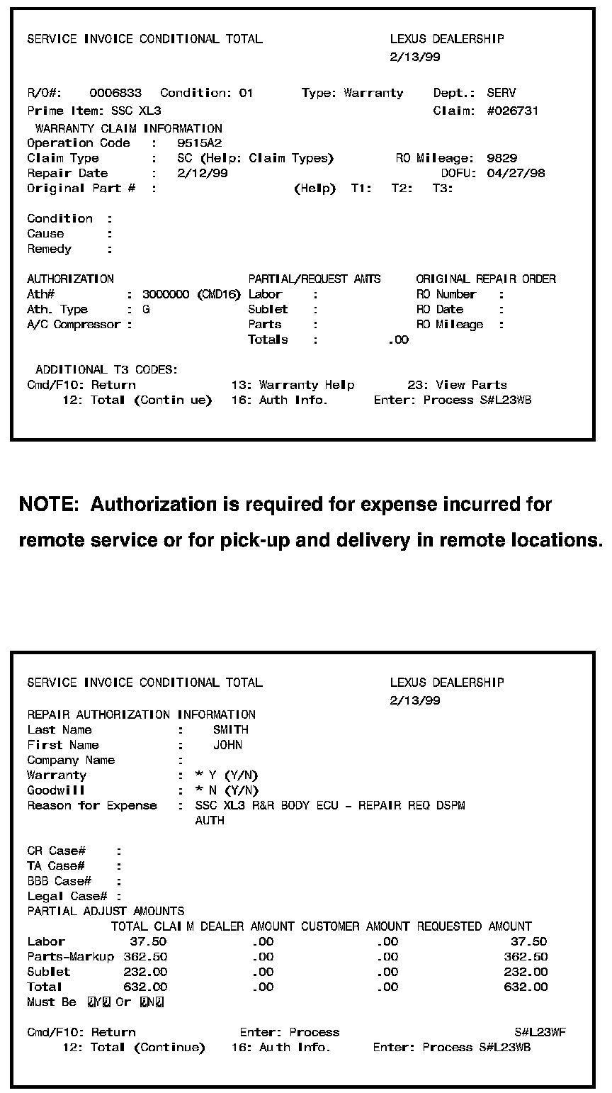 ^ Lexus will only pay for authorized costs that have been approved by DSPM or area offices.