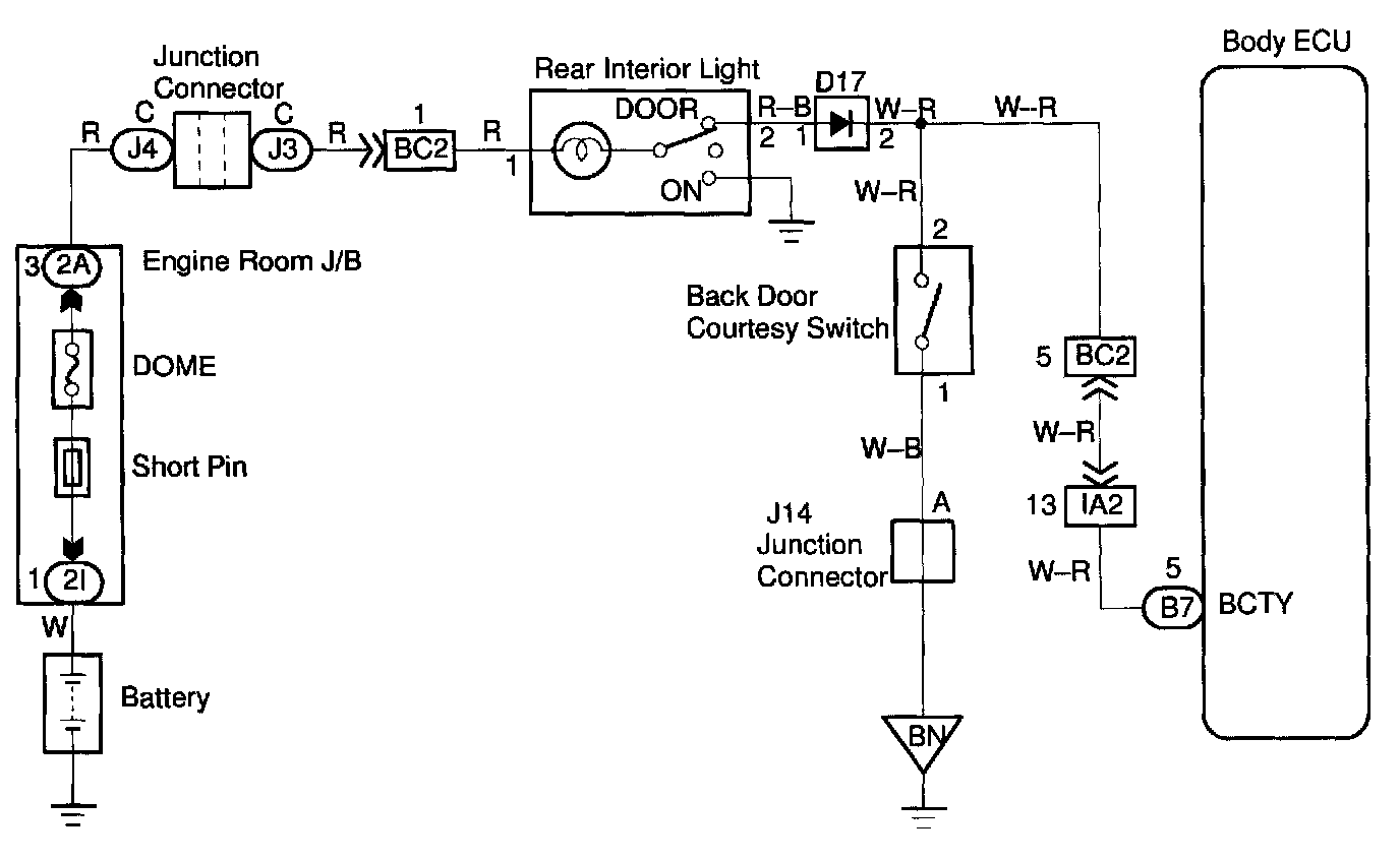 Rear Interior Light and Back Door Courtesy Switch Circuit