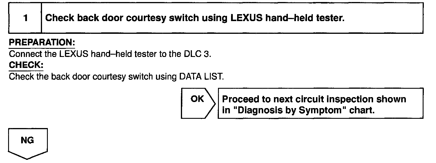 HINT: In case of using the LEXUS hand-held tester, start the inspection from step 1 and in case of not using the LEXUS hand-held tester, start from step 2.