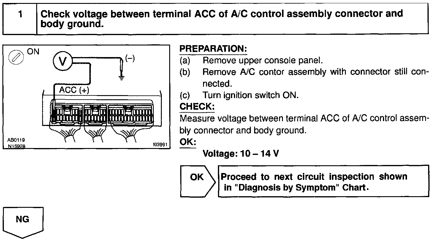 This circuit supplies power to the A/C control assembly (contains the A/C control assembly).