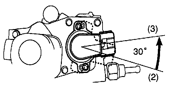 4. While reading the value of the throttle valve opening percentage (THROTTLE POS) of the CURRENT DATA, turn the throttle position sensor slowly to left and set the sensor at the center value of the standard value, and then torque the screws.