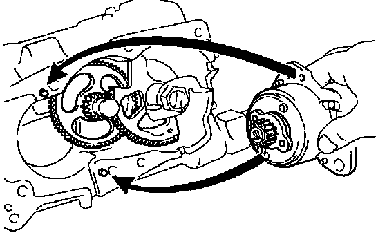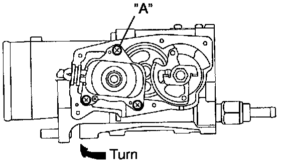 3. Rotate the motor to the direction marked with an arrow and temporarily install the set screw "A" under the condition that there is no wobbles in the motor and the positioning pin.