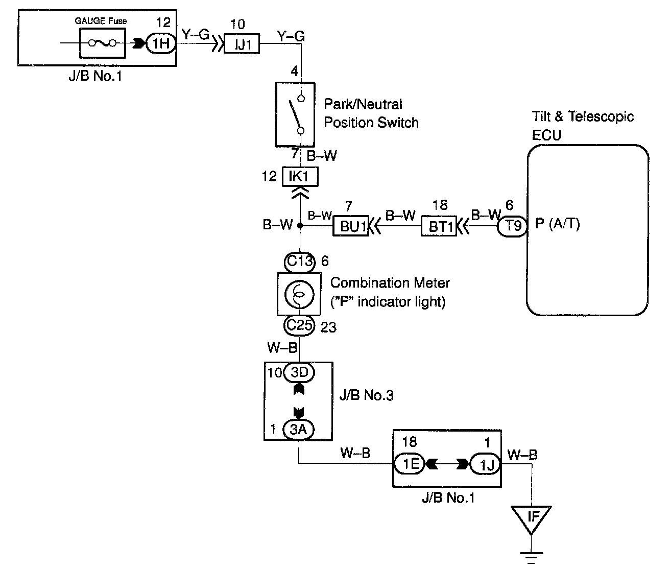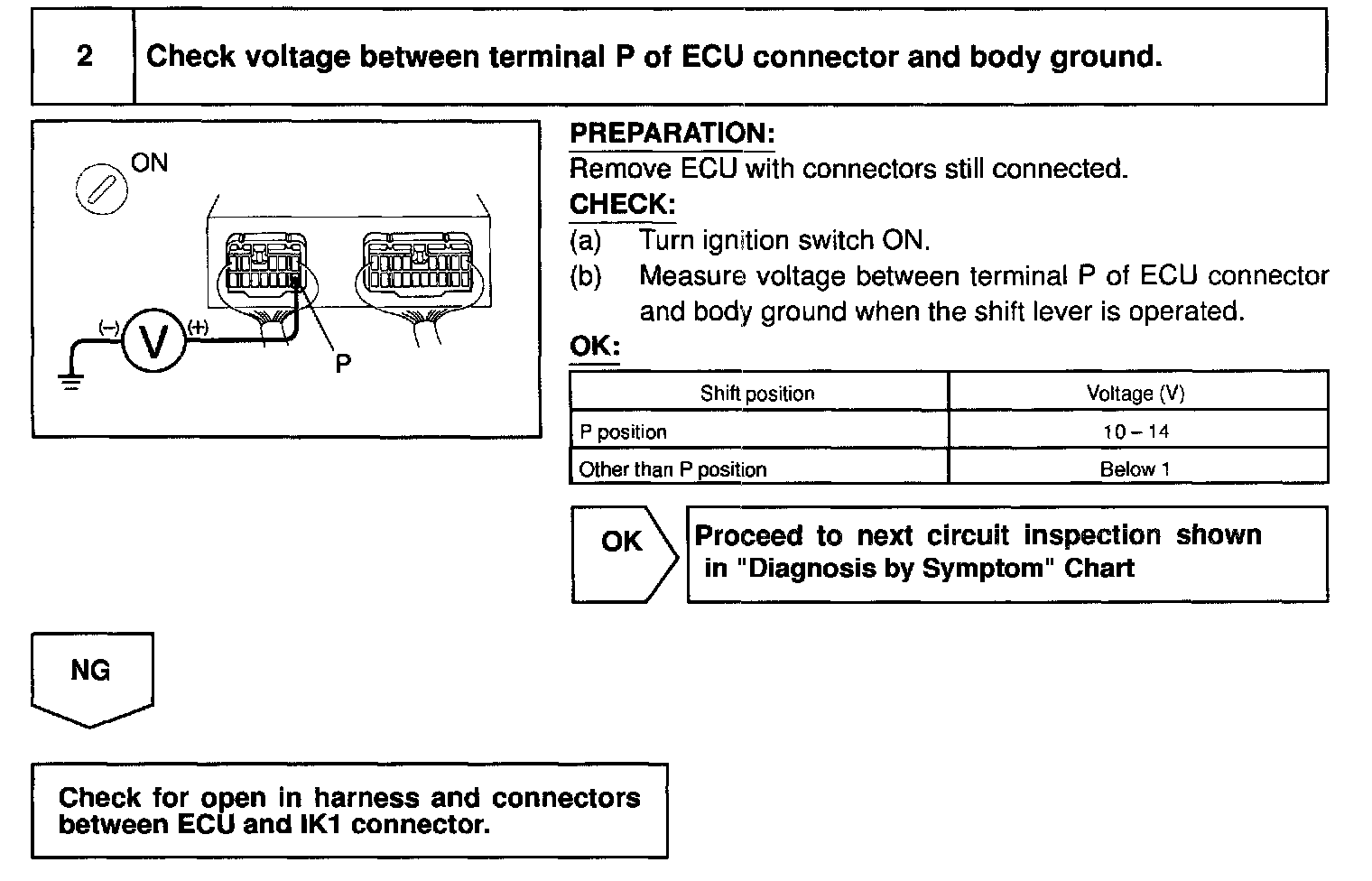 CIRCUIT DESCRIPTIONThe park/neutral position switch detects whether the shift position is in P position or in another position, and sends a signal to the ECU.