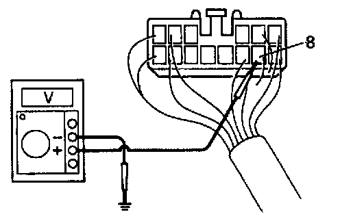 b. Check that there is 10 V - 14 V between terminal B8 and ground when the ignition switch is turned ON.