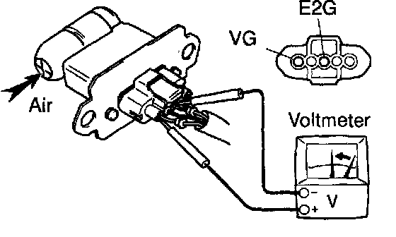 c. Using a voltmeter, connect the positive (+) tester probe to terminal VG, and negative (-) tester probe to terminal E2G.