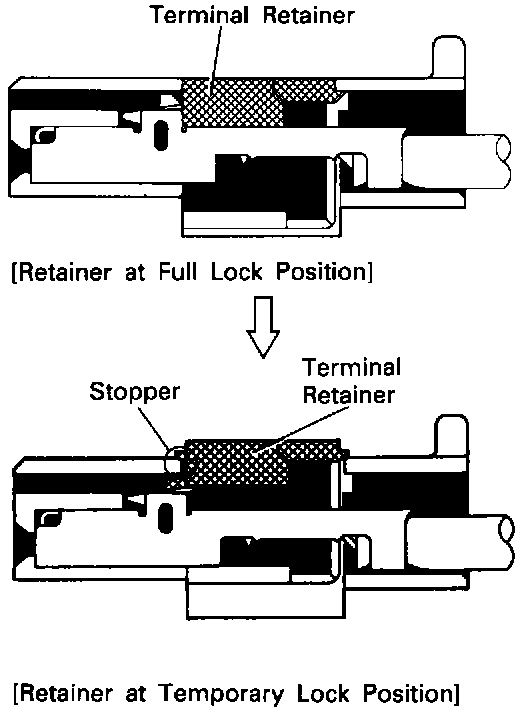 Push the terminal retainer down to the temporary lock position.