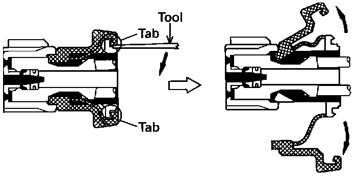 (b) Use a special tool or the terminal pick to unlock the secondary locking device or terminal retainer.