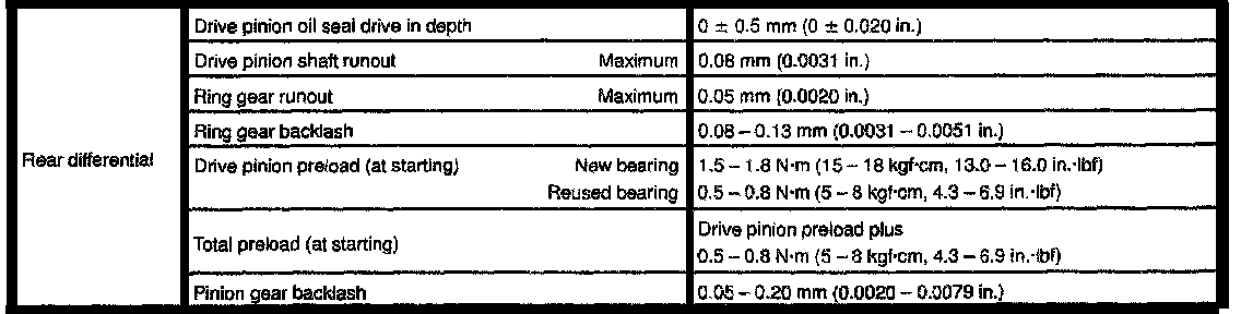 Rear Wheel Drive, Differential Ring Gear / Pinion Backlash: