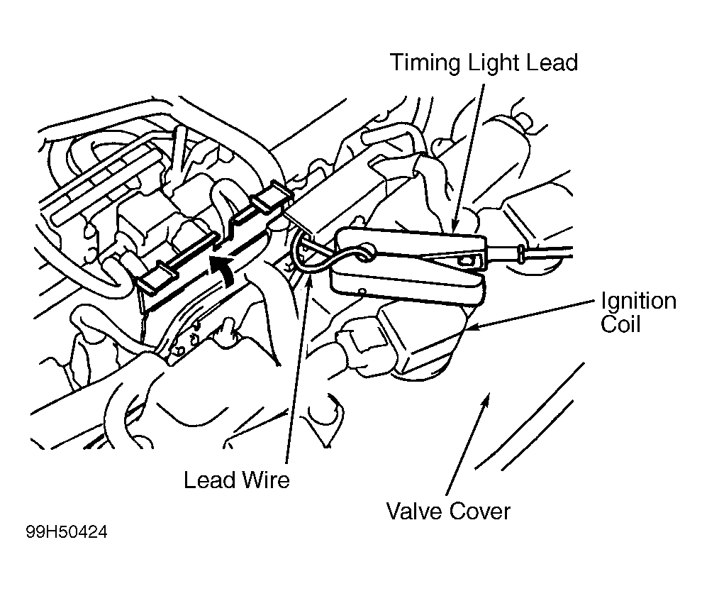 - Connect timing light lead to lead wire located near ignition on top of front valve cover. See Fig 2.
