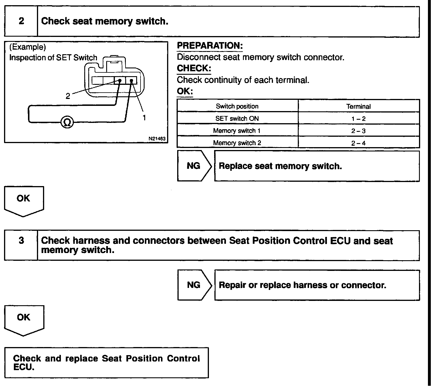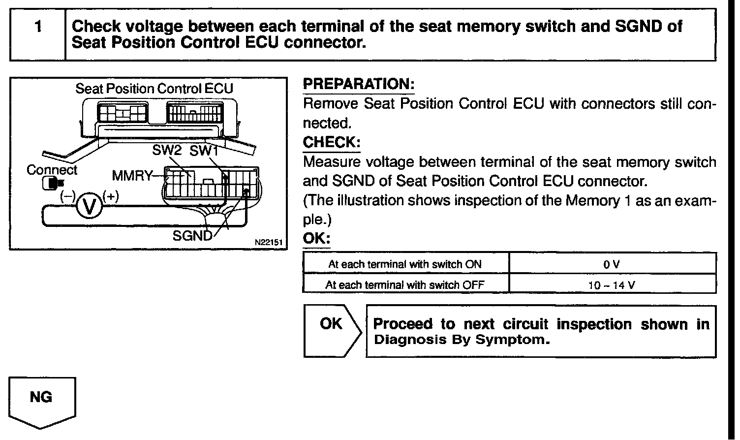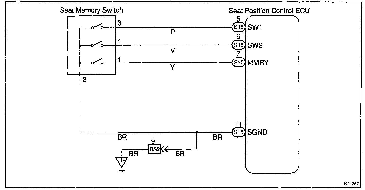 Seat memory switch send memory and return signals to the seat position control ECU.