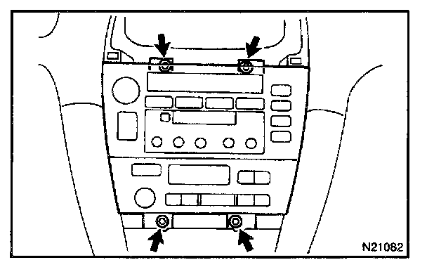 a. Remove the 4 bolts and pull out the A/C control assembly with radio, then disconnect the connectors.