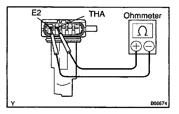 Using an ohmmeter, measure the resistance between terminals THA and E2.