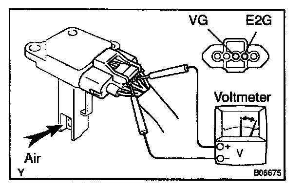 c. Using a voltmeter, connect the positive (+) tester probe to terminal VG, and negative (-) tester probe to terminal E2G.