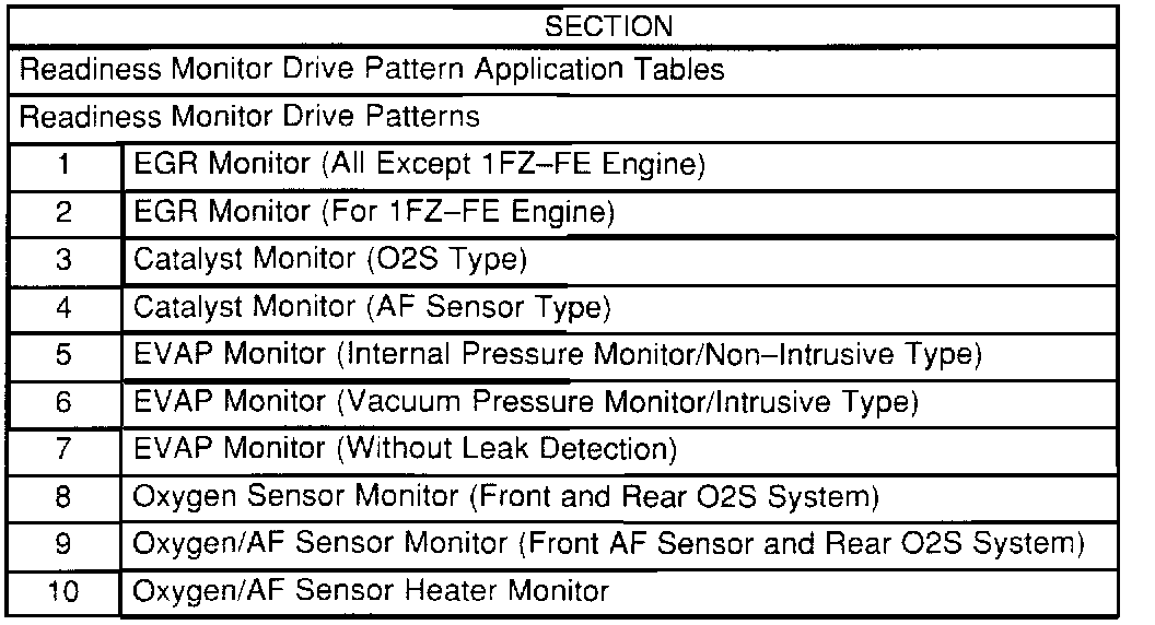 Refer to the Readiness Monitor Drive Pattern Application Table to determine which drive pattern should be followed.