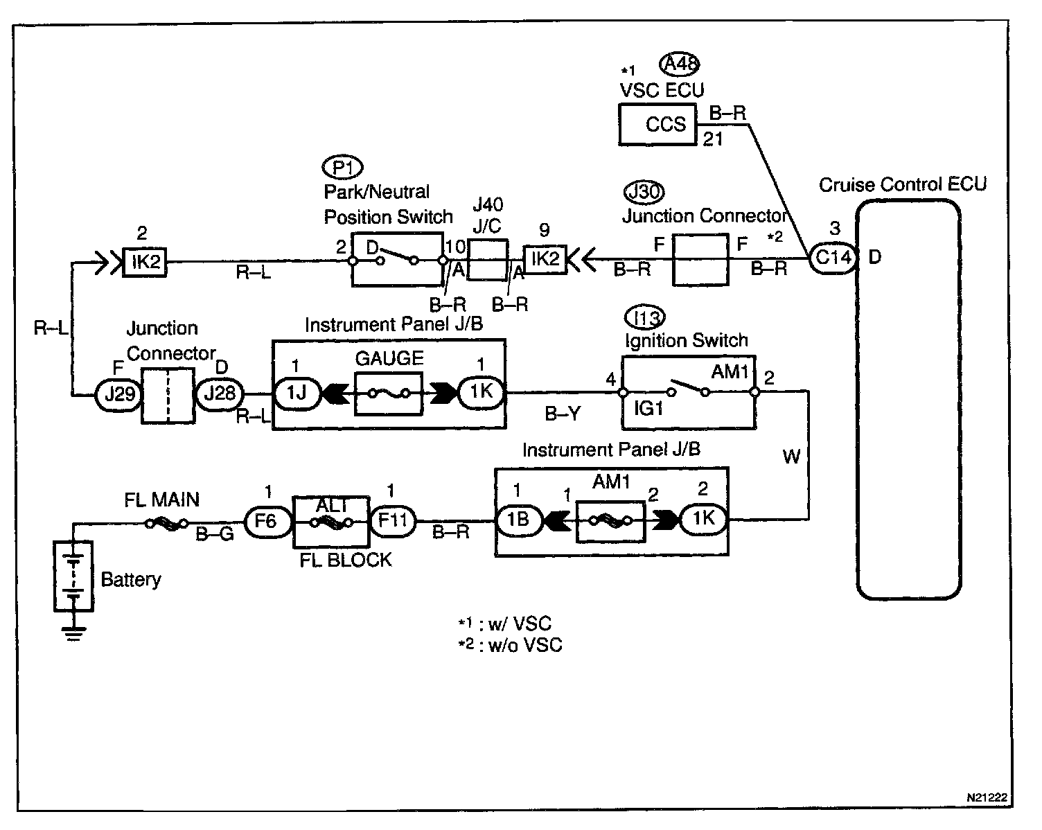 CIRCUIT DESCRIPTIONWhen the shift position is put in except D position, a signal is sent from the park/neutral position switch to the ECU. When this signal is input during cruise control driving, the ECU cancels the cruise control-