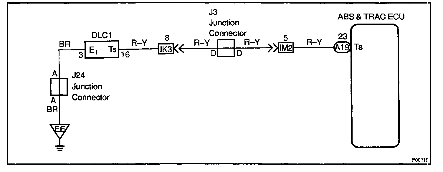 CIRCUIT DESCRIPTIONThe sensor check circuit detects abnormalities in the speed sensor signal which cannot be detected with the DTC check. Connecting terminals Ts and E1 of the DLC1 in the engine compartment starts the check.