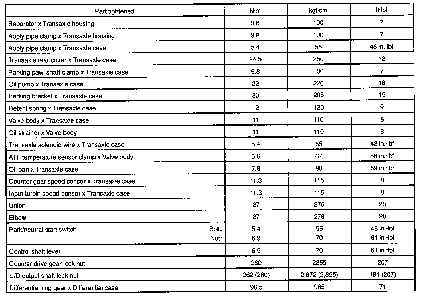 A/T Torque Data