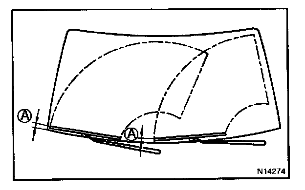 c. Adjust the wiper arm and blade assemblies to the positions shown in the illustration.