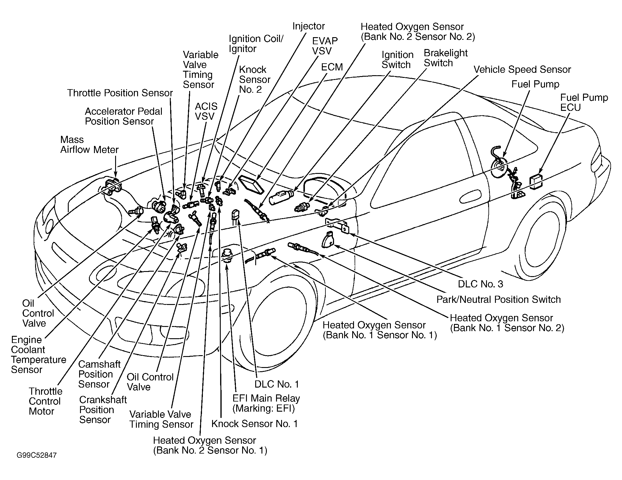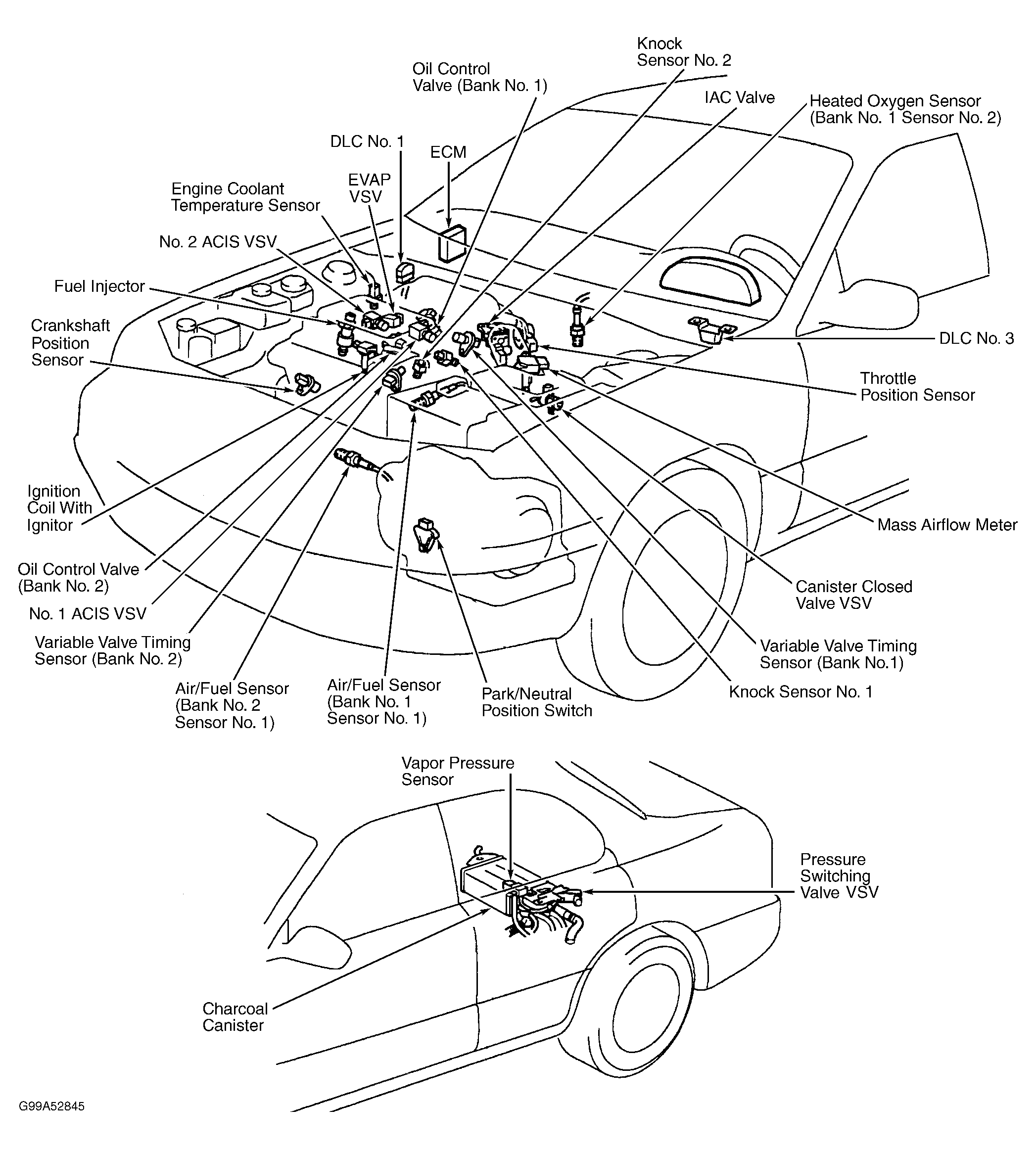 Fig 2: Locating Computerized Engine Control Components (GS300)