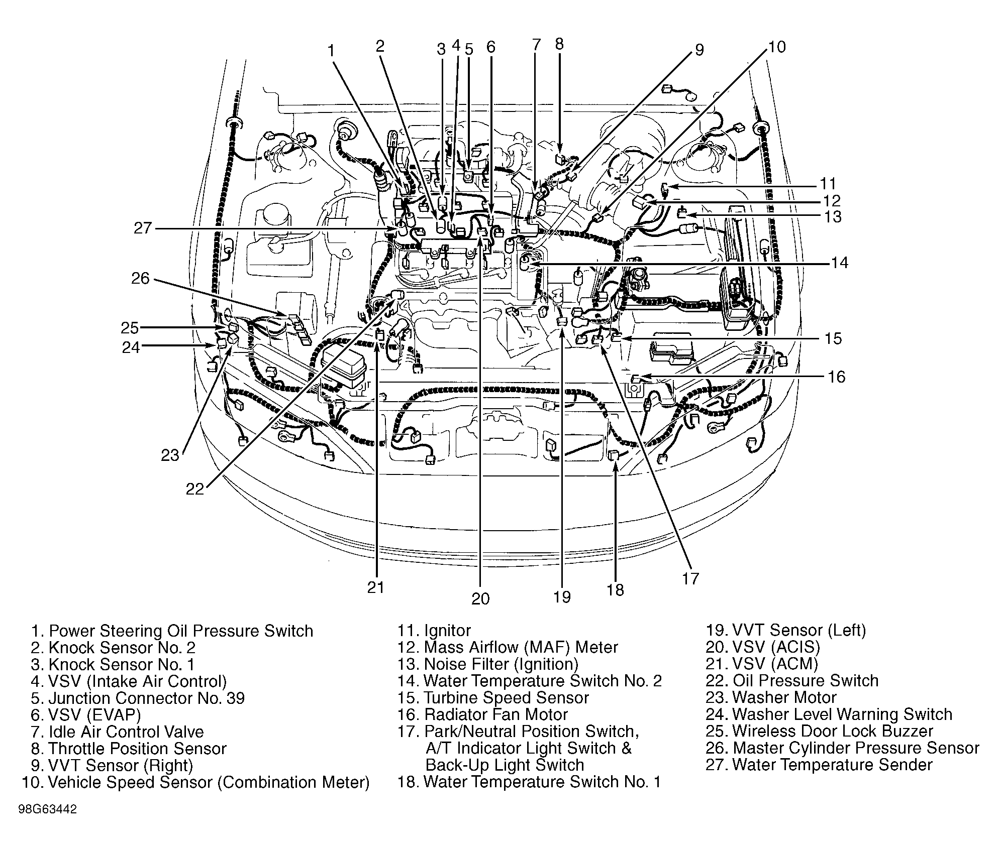 | Junction Connector No. 39 | On top right side of engine. See Figure. |