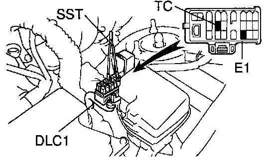 a) Using SST, connect terminals TC and E1 of the DLC1.