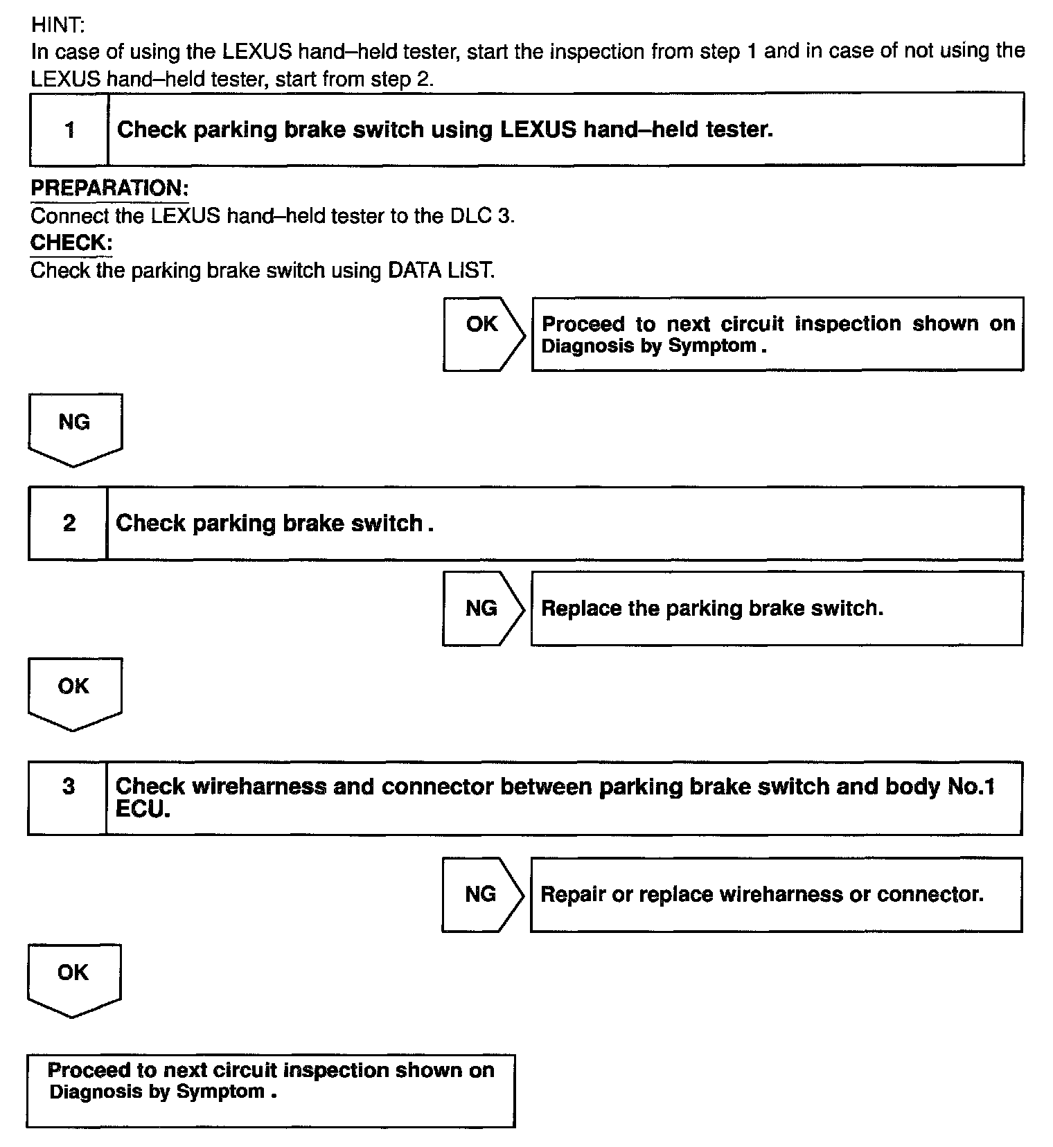 Parking Brake Switch Circuit / Body No.1 ECU