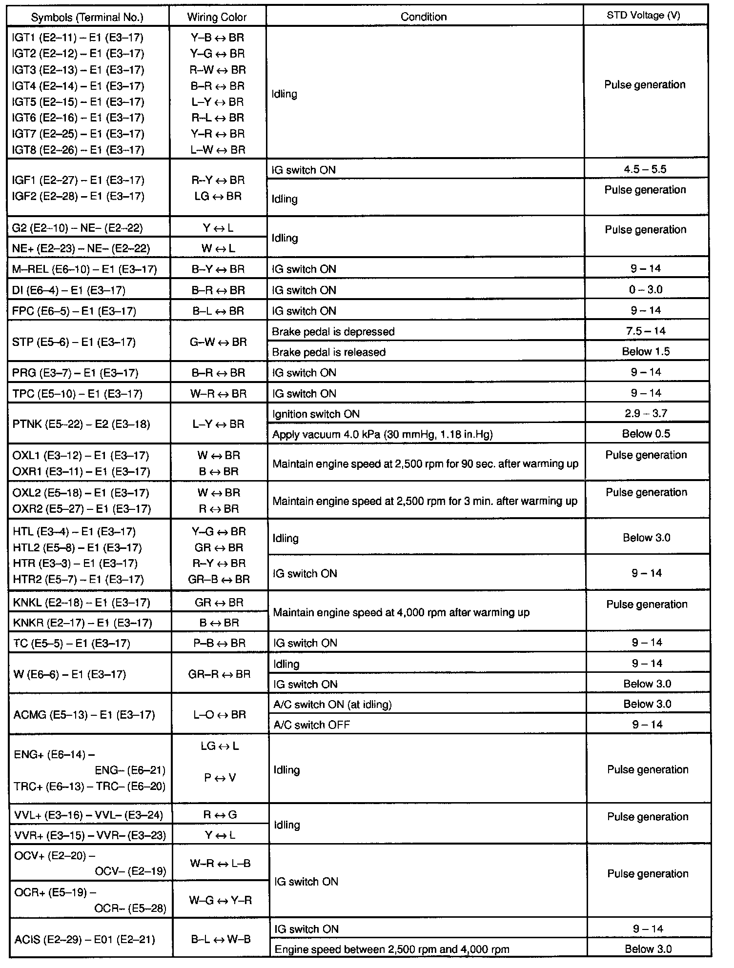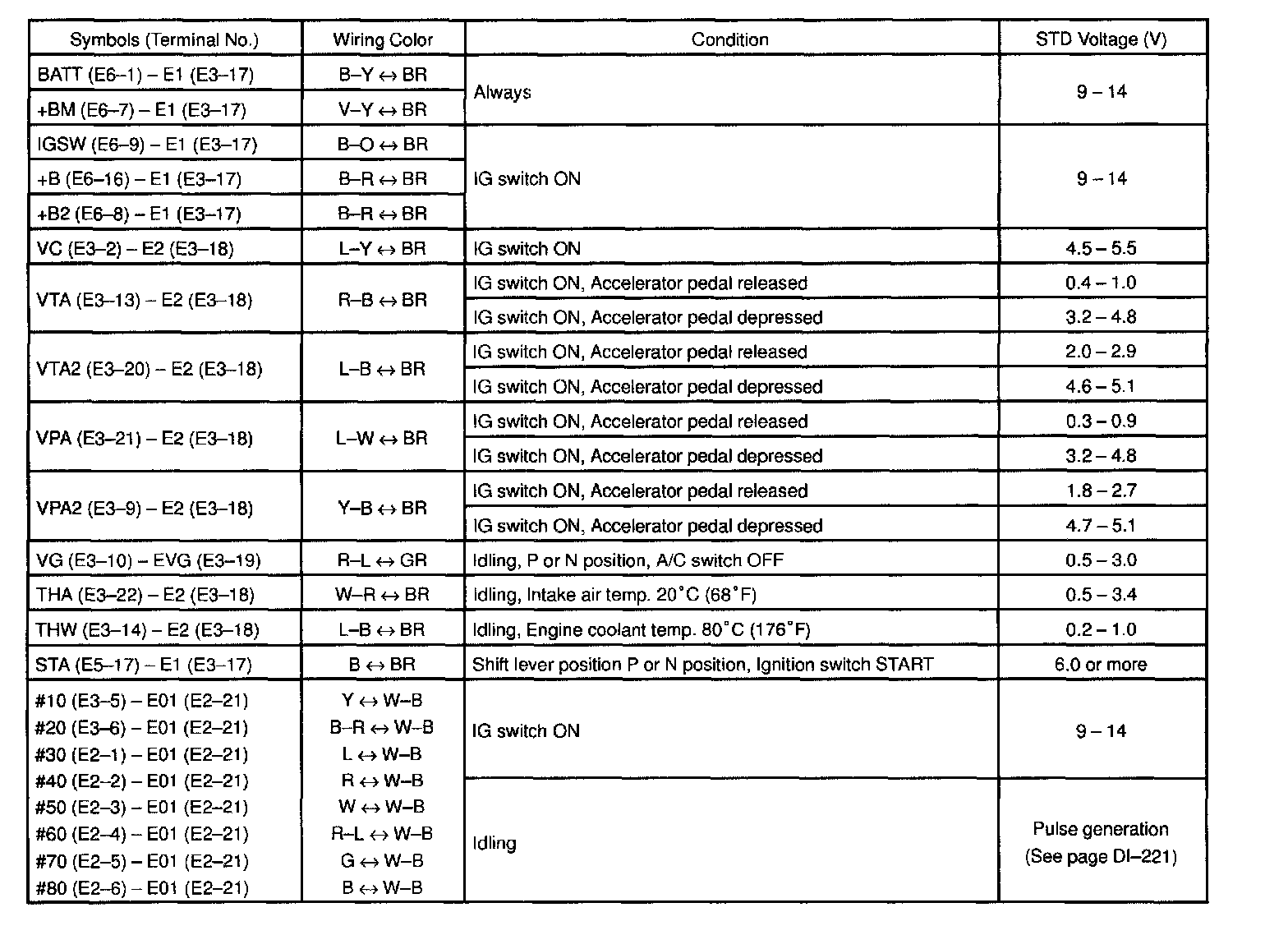 Pinout Values and Diagnostic Parameters