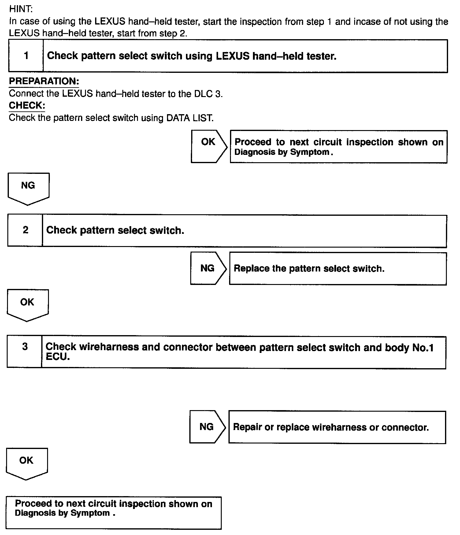 Body No.1 ECU detect the state of pattern select switch.