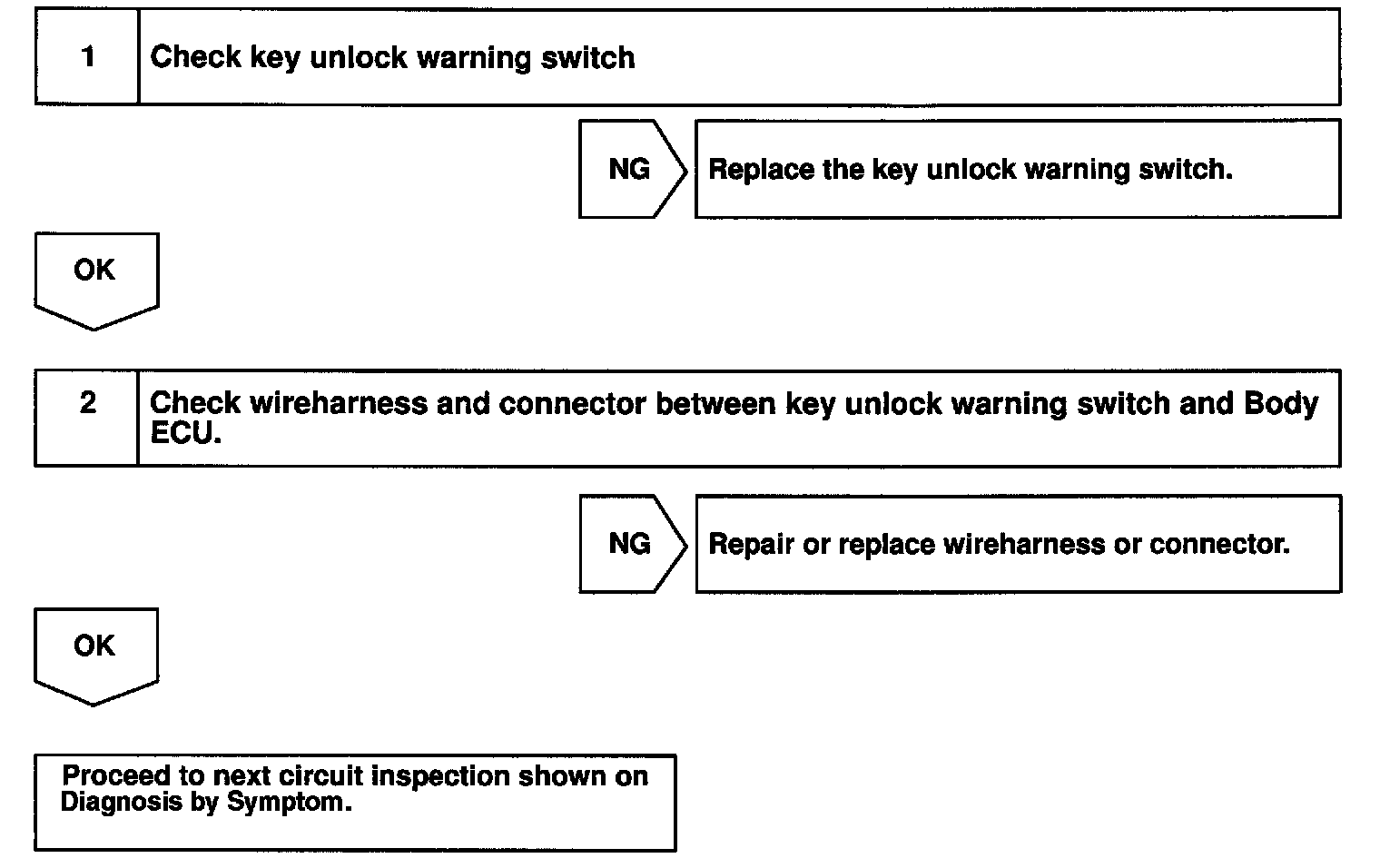 Home >> Lexus >> 2000 >> LS 400 V8-4.0L (1UZ-FE) >> Repair and Diagnosis >> Powertrain Management >> Computers and Control Systems >> Body Control Module >> Testing and Inspection >> Component Tests and General Diagnostics >> Key Unlock Warning Switch Circuit