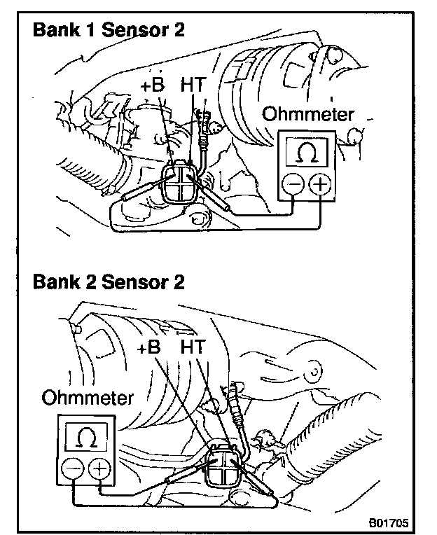 2. INSPECT HEATER RESISTANCE OF HEATED OXYGEN SENSORS (BANK 1,2 SENSOR 2)